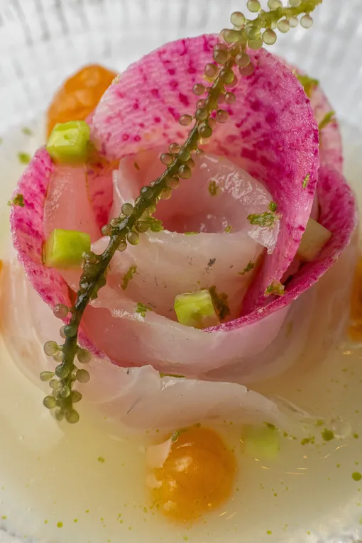 В Avrora представили первый дегустационный сет, созданный шефами Виталием Истоминым и Артемом Лосевым, — он посвящен легендарному фрегату и крейсеру «Аврора», а также гастрономической истории России XIX–XXI веков. Девять курсов образуют целое повествование: от изящных гужеров с палтусом и трюфелем, напоминающих о морских путешествиях, до современных кулинарных интерпретаций, как, например, говяжье ребро в маринаде из горгонзолы. В сет включены неожиданные сочетания и редкие продукты — рифовая рыба цезий с морошкой, сахалинский гребешок с икорным соусом, щавелевый сорбет с белужьей икрой.