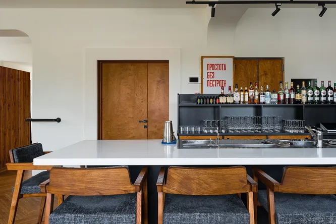 Ресторан отличается минималистичным и элегантным интерьером, где каждая деталь продумана до мелочей, включая специально созданную посуду и просторную летнюю террасу. Концепция проекта отражает философию его создателей: семейные ценности, чистота вкуса и гастрономия как удовольствие и забота о гостях.