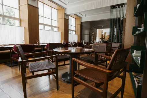Здесь можно не только сыграть партию, но и вкусно поесть в ресторации «Москва». Это заведение с открытой кухней, и наблюдение за готовкой — отдельное развлечение. В меню от шеф-повара Владимира Щепилова — вареники с сулугуни, блюда с вкуснейшим костным мозгом, а также дары моря и реки: сом, серая макрель и нежные гребешки. В баре ресторации можно отметить победу, одержанную за бильярдным столом, рюмкой старого коньяка, бокалом выдержанного портвейна или стопкой настойки на травах и ягодах.