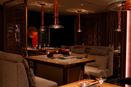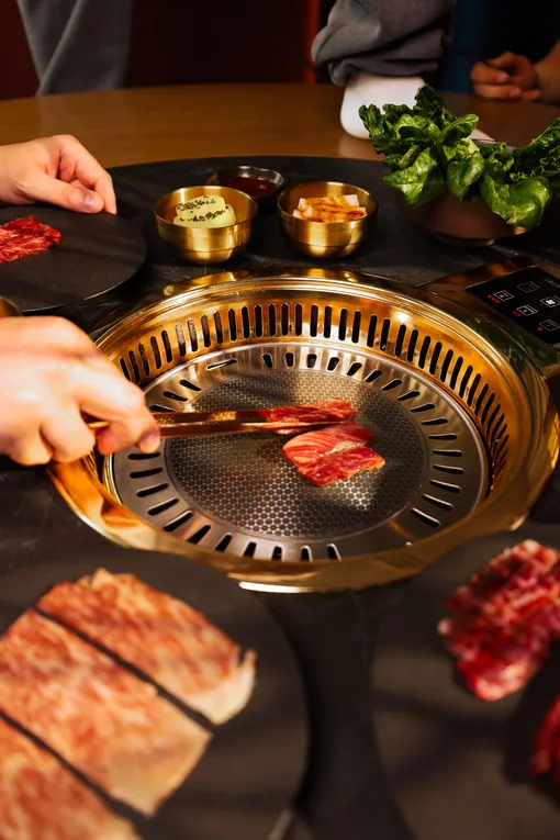 В центре каждого стола — BBQ-жаровни: это интерактивный гастрономический опыт, где гости сами готовят мясо, самостоятельно регулируя степень прожарки. Такой формат помогает глубже погрузиться в культуру корейского барбекю и получить особое наслаждение от мяса.