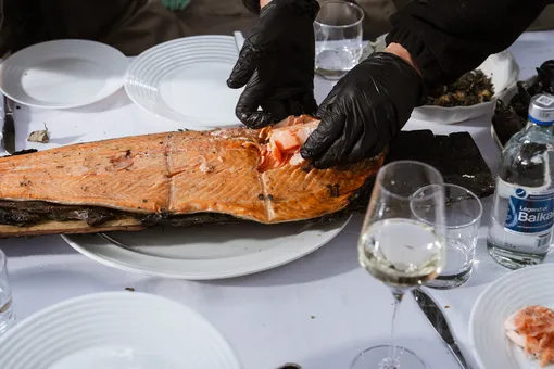 В завершение гости могут насладиться говяжьей грудинкой, скоблянкой и десертами, такими как жимолость с манго и шоколад с фенхелем — это настоящее кулинарное событие для ценителей изысканной кухни. Помимо еды, здесь есть собственный пляж и русская баня с аромамаслами и березовыми вениками.
