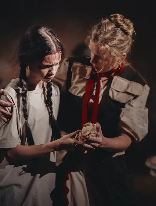В постановке заняты артисты Ирина Леонова, Любовь Ещенко, Екатерина Казакова, Константин Юдаев и Михаил Мартьянов и музыканты Антон и Елена Мойсеенко, режиссеры-постановщики спектакля — лауреат Государственной премии России Ирина Леонова и Константин Юдаев.