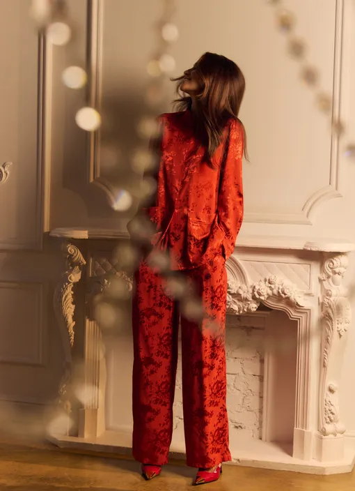 В центре концепции — идея красивого, но камерного и душевного праздника, чистые линии и отсутствие визуального шума. В коллекции — платья и костюмы для любых форматов зимних встреч: от похода в театр до новогодних ужинов и камерных семейных событий. В коллекции использовали несколько ключевых материалов: темно-синий бархат, передающий спокойную уверенность, текучий красный шелк, создающий ощущение энергии и силы, а также узорчатый жаккард и двусторонний шелк в сливовых и пастельных оттенках.