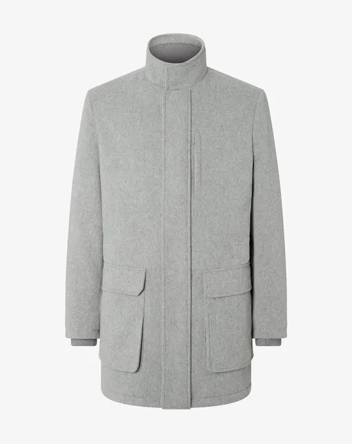 Или более универсальное пальто в цвете серый меланж — с воротником-стойкой, нейлоновой подкладкой и утеплителем, накладными карманами и скрытой молнией. Такая модель подойдет как под костюм, так и для повседневного образа.