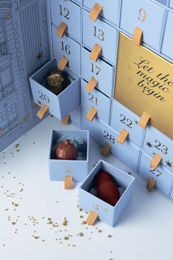 Отель представляет набор от шеф-кондитера Нины Надолинской, выпускницы легендарной парижской школы Bellouet Conseil. В каждой ячейке адвент-календаря — миниатюрная сладость: шоколадный Щелкунчик, Matryoshka Chic, миндальные флорентини, ассорти трюфелей, цитрусовый мармелад и другие фантазии от кондитера The Carlton. Подарок, одинаково уместный для партнёров, друзей и близких.