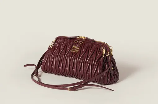 Сумка Miu Miu из нубука и матлассе — это воплощение чистоты формы и тонкой ручной работы, сочетающей в себе вдохновение с подиумов и функциональность повседневного использования. Ее можно носить на плече, в руке или через плечо, благодаря съёмной и регулируемой кожаной бандолье Ayers. Золотистые фурнитуры, застёжка-молния и логотип с рельефными буквами подчеркивают фирменный стиль бренда, а внутренний хлопковый сатиновый подклад с двойным карманом на молнии добавляет практичности.