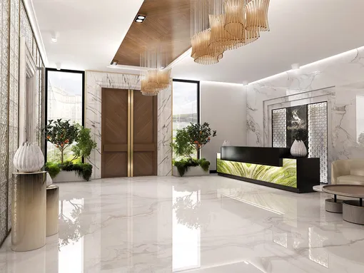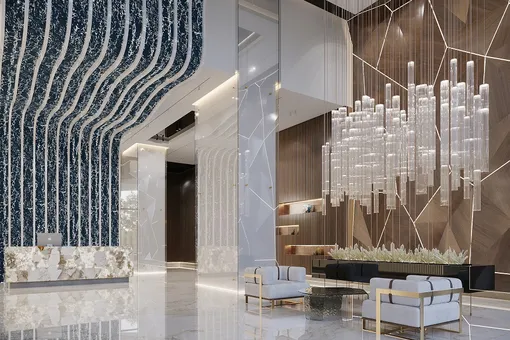 Лаунж-зоны, лифтовые холлы и лобби клубного дома делюкс-класса Quartier d’Or / «Золотой квартал» от девелопера Rariteco напоминают шкатулку с драгоценными камнями. В их отделке используется более 20 разновидностей эксклюзивного мрамора из разных уголков мира. Разнообразие оттенков впечатляет: от королевского бежевого и аристократичного кофейного до эксклюзивного серебристого и бархатистого малахитового.