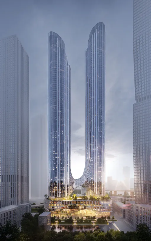 Две башни высотой 83 и 96 этажей, объединенные шестиуровневым стилобатом с эксплуатируемой кровлей станет флагманом среди будущих небоскребов в локации «Большого Сити».
